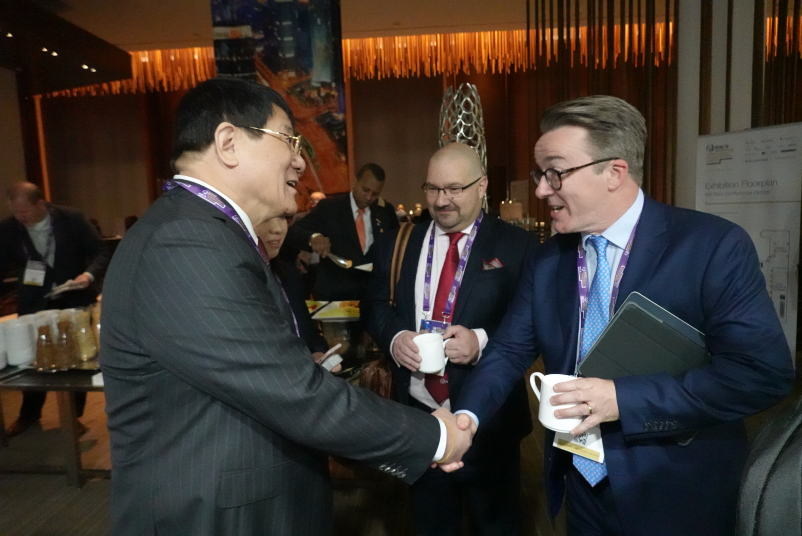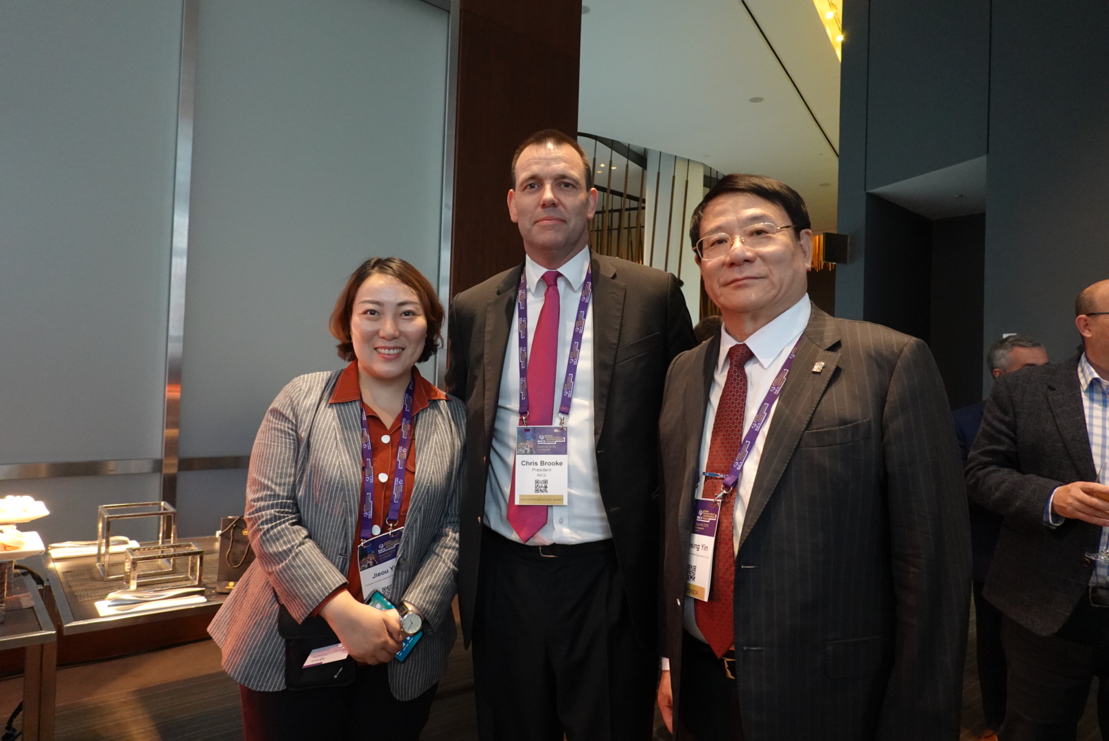 | 董事长印保兴(右),董事、常务副总经理印捷欧(左)与RICS主席 Chris Brooke(中)合影 |