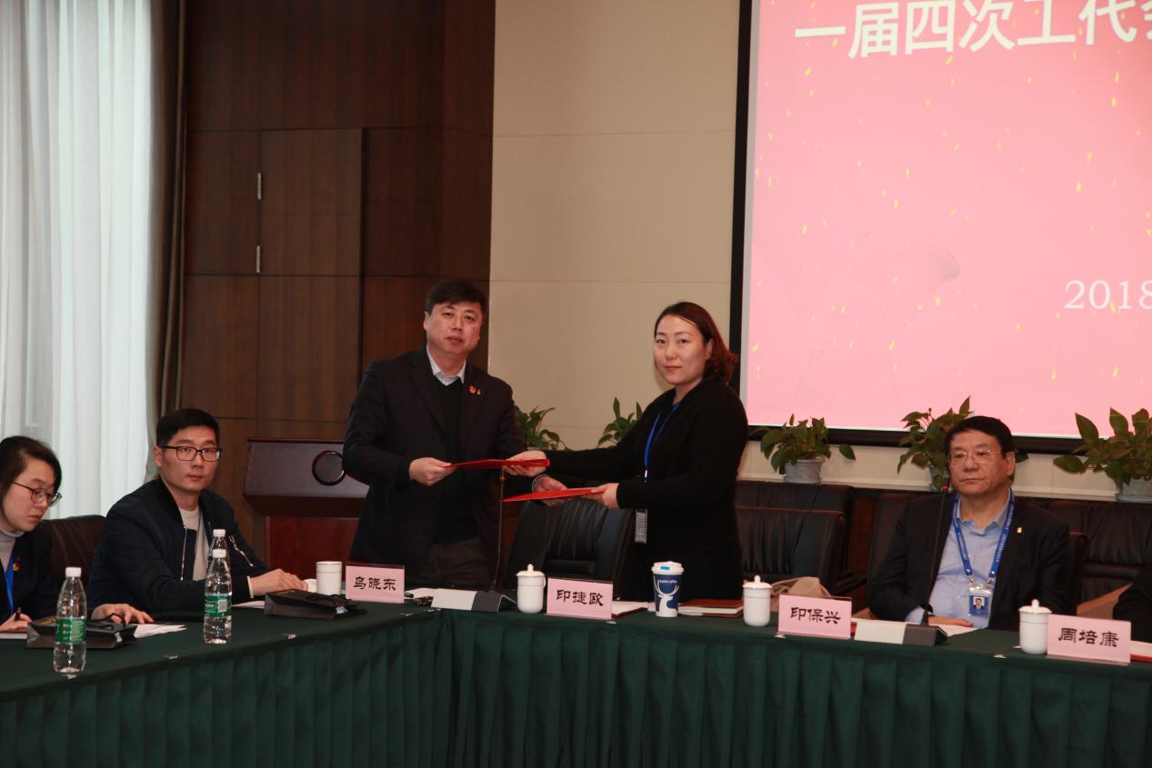 | 王鸣跃同志因已届退休年龄,辞去工会主席职务。大会表决通过乌晓东为工会主席。董事、总经理周培康代表工会向王鸣跃同志赠送了纪念品。 | |||||